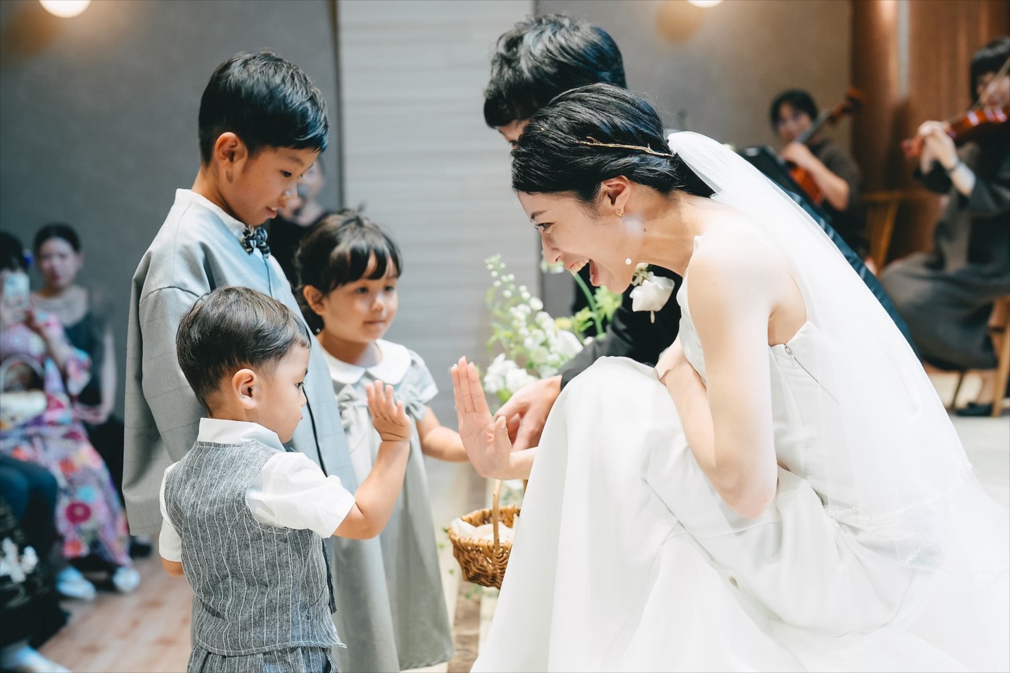 ゲストの皆様とハイタッチしながら歩くおふたりは、とっても幸せそうでした。
