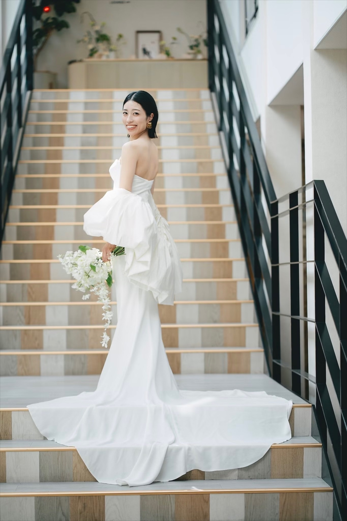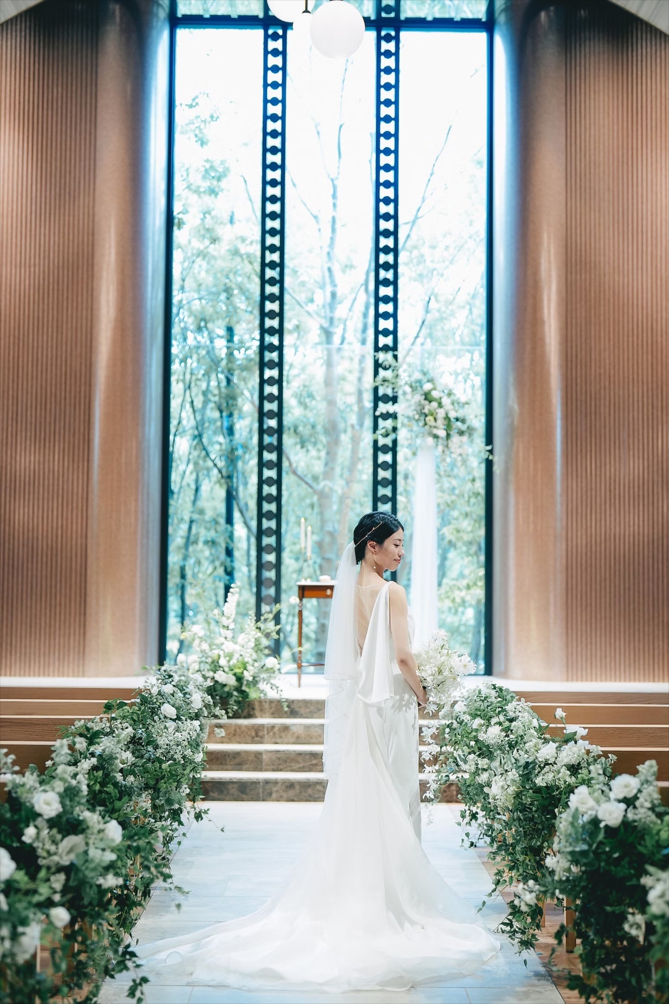 1着目は挙式らしい上品さと、前後で見え方が異なる表情豊かなドレス