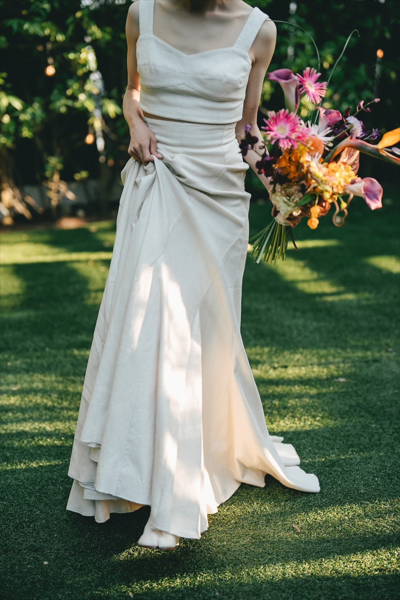 3着目は夏の結婚式らしいリネンのセパレートドレス