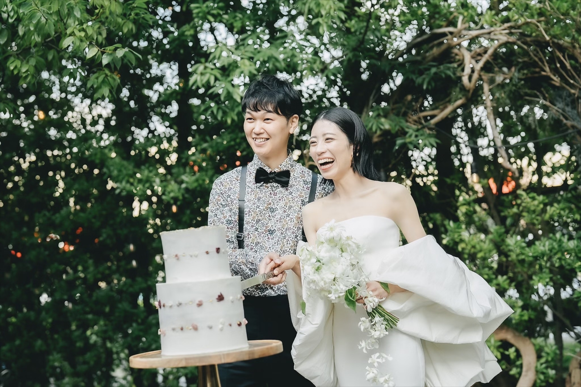 続くケーキイベントでは、シンプルでありながらも、おふたりのセンスを感じるケーキが登場。