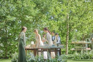 開放感あふれるガーデンで行えば、ゲストと近い距離でおもてなしが可能。ゲストと一緒に盛り上がることができる演出です!