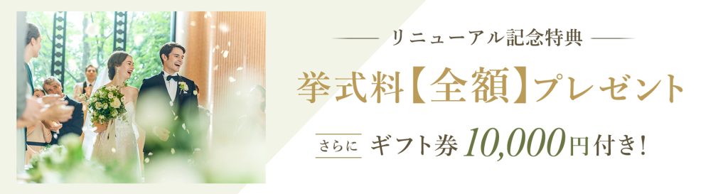 \26年2月、待望のパーティ会場リニューアル!挙式料全額&ギフト券10,000万円進呈/